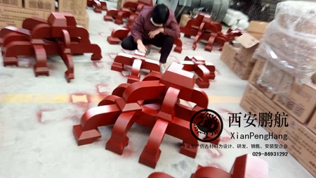 read more西安鹏航为某古建园林改造工程中,提供了部分铝代木古建材料,包含定制款铝合金檐椽组合、金属斗拱等古建材···