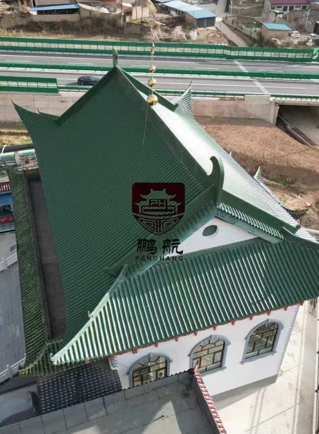 在甘肃张家川,承载着当地宗教文化与历史记忆的清真寺,因长期经受风沙侵蚀与岁月磨砺,原有屋面瓦片出现老化、破损等问题,不仅影响建筑美观,更威胁到清真寺内部设施的安全。为让这座重要的宗教建筑重焕光彩,张家川清真寺管理方启动屋面改造项目,经过多番对比与审慎评估,最终携手西安鹏航金属科技有限公司,选用其生产的铝镁锰合金瓦,开启一场传统与现代交融的焕新之旅。