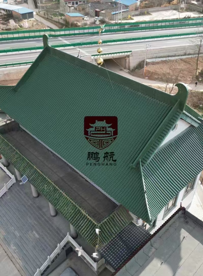 在个性化定制服务上,西安鹏航充分考量张家川清真寺的建筑风格与文化特色。依托颜色可调、形状可定制的优势,为清真寺量身打造专属铝镁锰合金瓦。结合清真寺建筑庄重肃穆的气质,最终确定的瓦片样式融入中式美学元素,既彰显宗教建筑的独特韵味,又与周边环境和谐统一。此外,1.5、2.0、3.0 多种厚度规格以及 2MPa 的抗压强度,确保瓦片能在强风等恶劣天气下稳固如初,为清真寺屋面提供坚实保障。